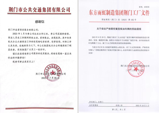 近期,市金盾保安公司所屬安保守護(hù)分公司駐守保安崗點先后受到市公交集團(tuán)、東方雨虹集團(tuán)來函表揚和工商銀行荊門分行、湖北爍礪科技公司口頭表揚。這是客戶單位對駐點保安人員服務(wù)工作的充分肯定,更是對金盾安保服務(wù)品牌的高度認(rèn)可。