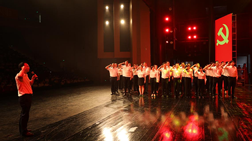 文藝匯演中,舉行了新黨員入黨宣誓儀式,在市城控集團(tuán)黨委副書記張本華帶領(lǐng)下,新黨員上臺(tái)宣誓,面對(duì)鮮紅的黨旗莊嚴(yán)承諾,表達(dá)為共產(chǎn)主義事業(yè)奮斗終身的決心和信念。